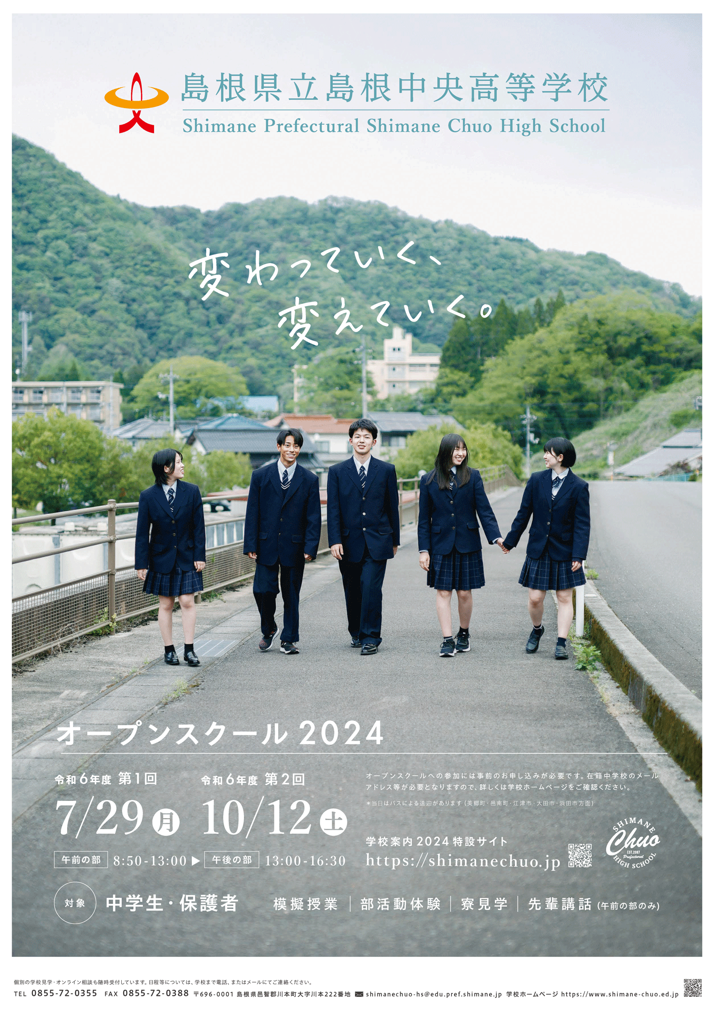多様な生徒と大人が、そして、学校と地域が一体となり「自立・共生・挑戦」の力を育む島根中央高校で「今」と「未来」に挑戦していきましょう。