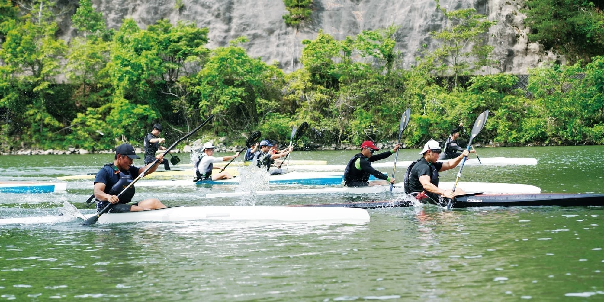 旧邑智高校時代から続くカヌー部の練習場は、カヌースプリント競技にとって最適の環境です。部員の多くが高校から競技を始めた生徒たちですが、毎年全国で結果を残すまでに成長し、国際大会に出場するなど輝かしい実績を挙げています。