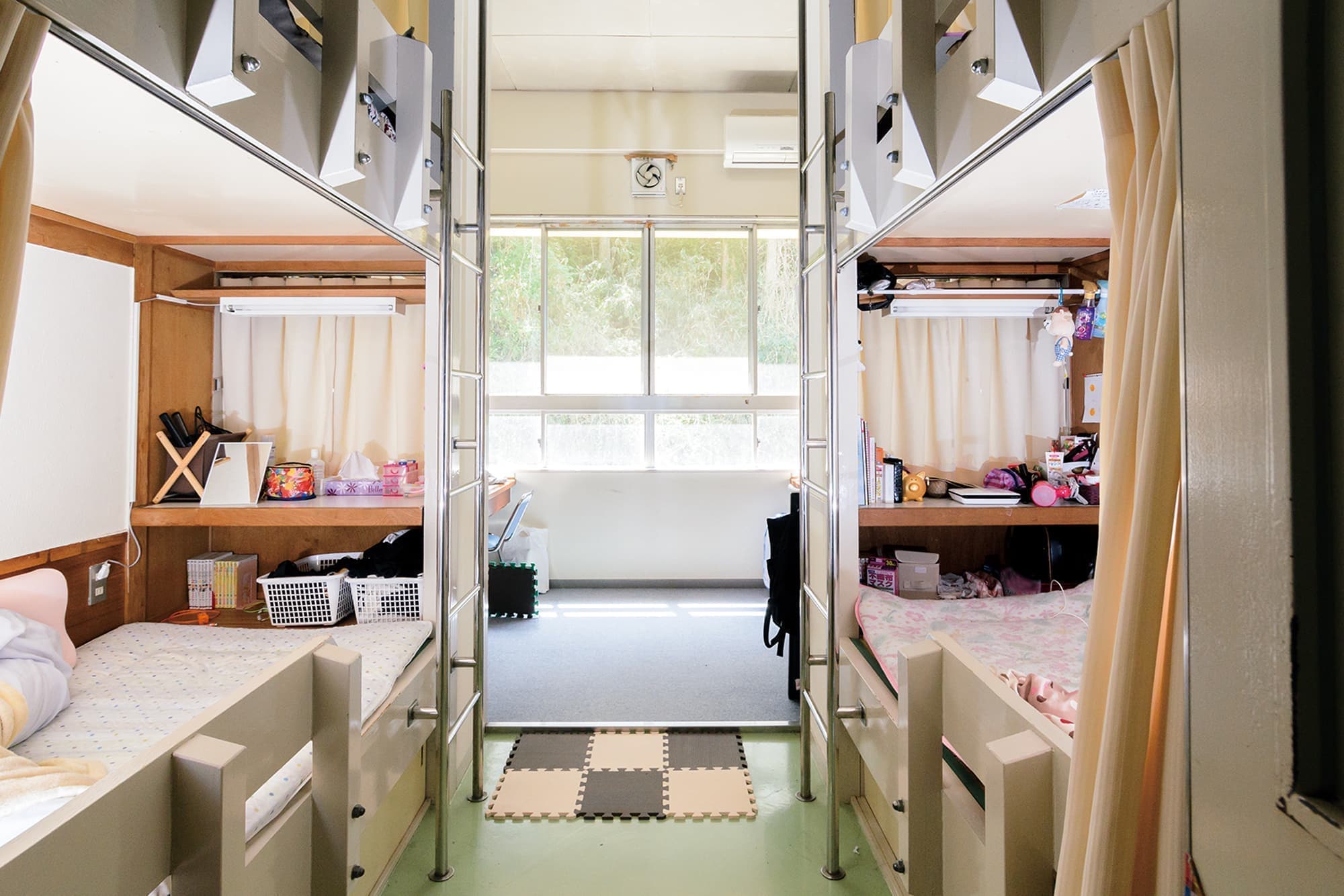 学習交流センターは、閉校となった小学校を改装した川本町が運営する滞在施設です。野球部以外の男子生徒を対象とし、居室にはブース型の個人スペースを確保しています。施設内には学習ルームが設けられ、勉強に打ち込める環境も整っています。